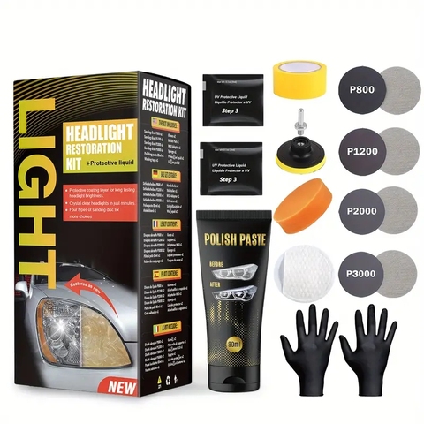 UV koruyucu kaplama ile far restorasyon kiti-otomotiv far temizleyici ve onarım seti zımpara ile lehçe macun